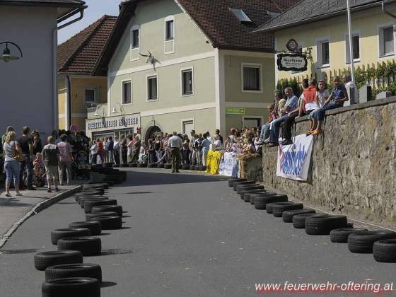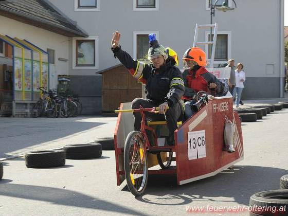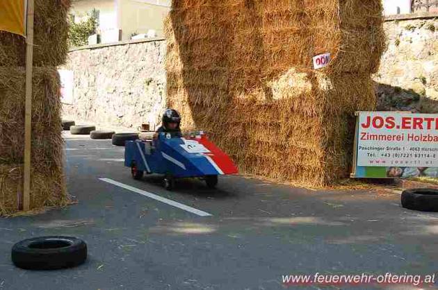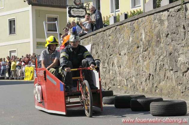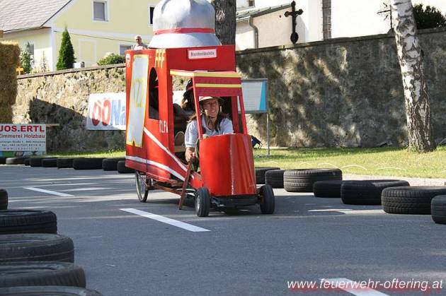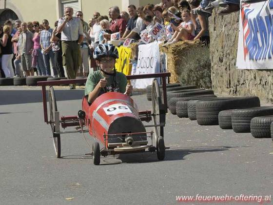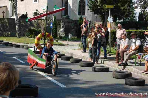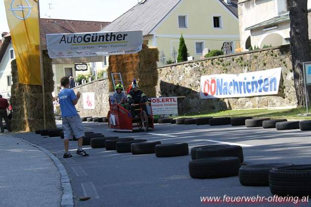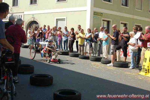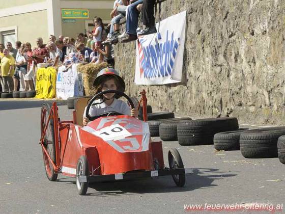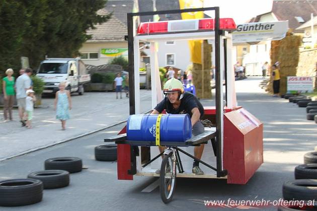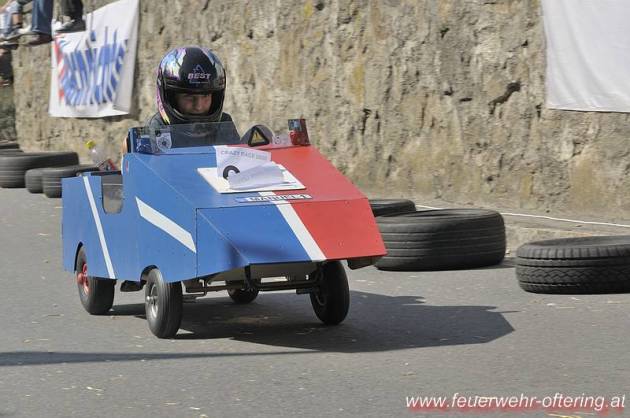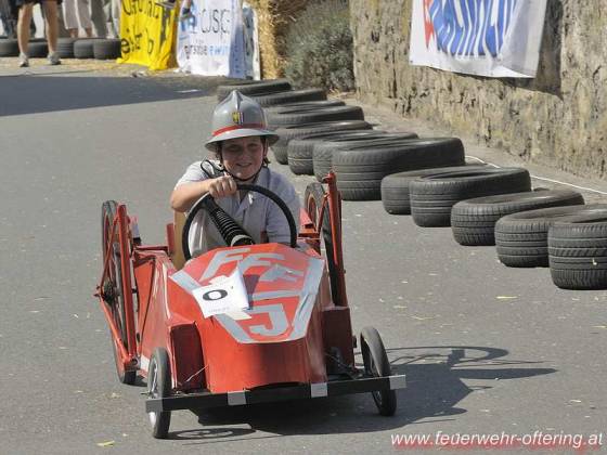 Mit einer Fahrzeit von 38 sec ging der Sieg an das aus St. Agatha angereiste "Red Blue Racing Team", dicht gefolgt von der Feuerwehr Axberg in ihrem Löschfahrzeug und der OÖN-Seifenkiste, welche von einem Marchtrenker Team pilotiert wurde!