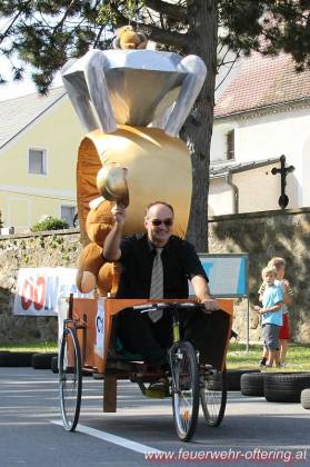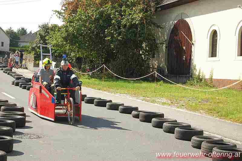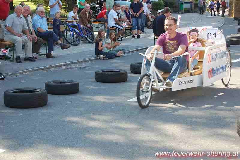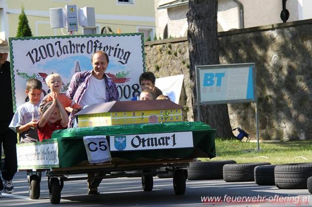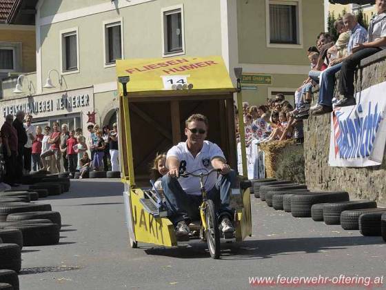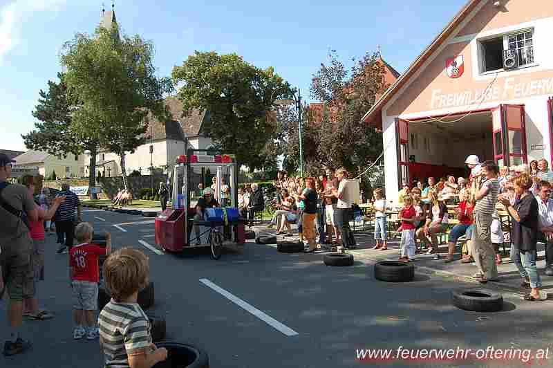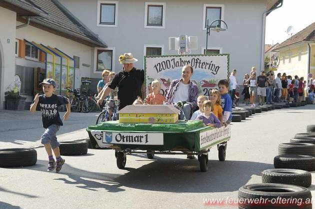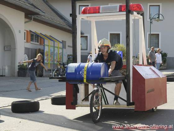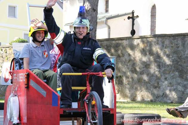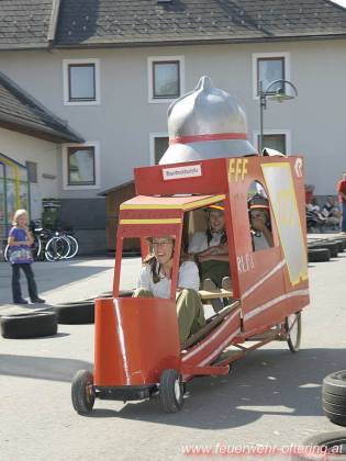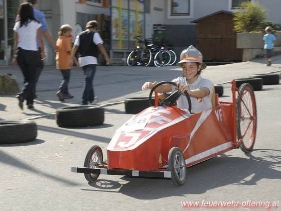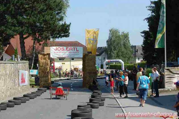 Mit einer Fahrzeit von 38 sec ging der Sieg an das aus St. Agatha angereiste "Red Blue Racing Team", dicht gefolgt von der Feuerwehr Axberg in ihrem Löschfahrzeug und der OÖN-Seifenkiste, welche von einem Marchtrenker Team pilotiert wurde!