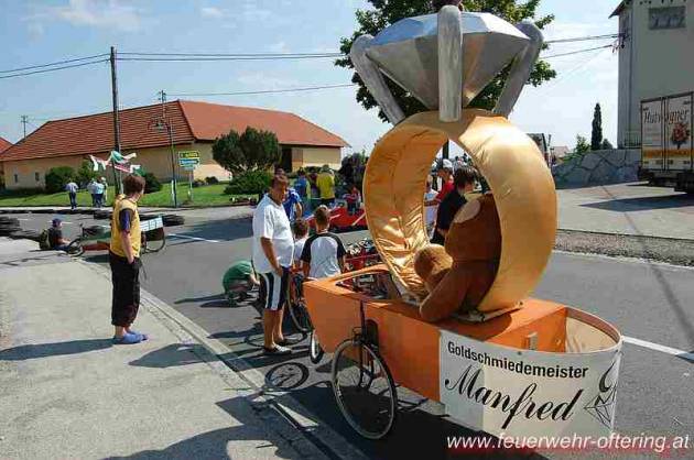Im Bewerb um die kreativste Seifenkiste ging es in diesem Jahr äußerst knapp zu. Der örtliche Nahversorger Wolfgang Boldog konnte sich mit seinem rasenden Einkaufswagen über den dritten Platz freuen, nur geschlagen von Goldschmied Manfred Roithner mit seinem überdimensionalen Diamantring und dem Siegerteam des Vierkanterdorfes, pilotiert von Otmar Kastner. Dieser wurde bei seiner Fahrt von einer großen Kinderschar begleitet, welche zu den Klängen von "Heut ist so ein schöner Tag" und "I like to move it" tolle Tanzeinlagen auf die Rennstrecke legten und so ihrem Team zum entscheidenen Punkt für den Sieg verhalfen