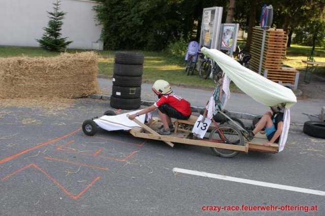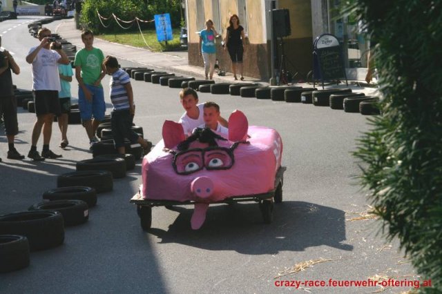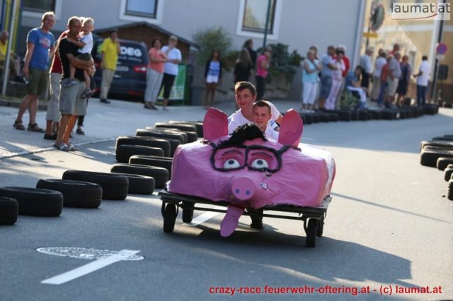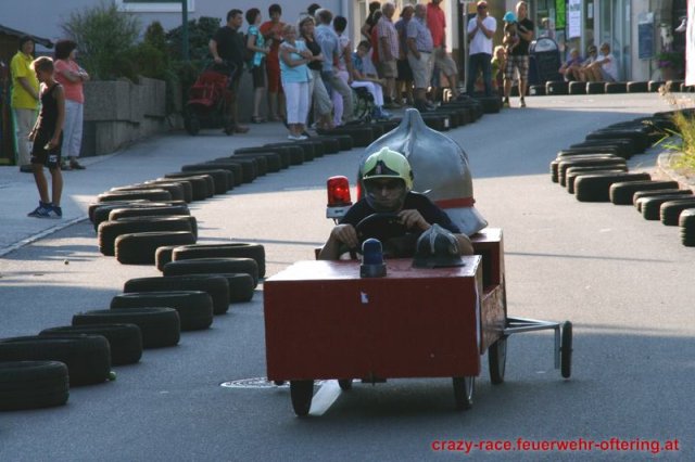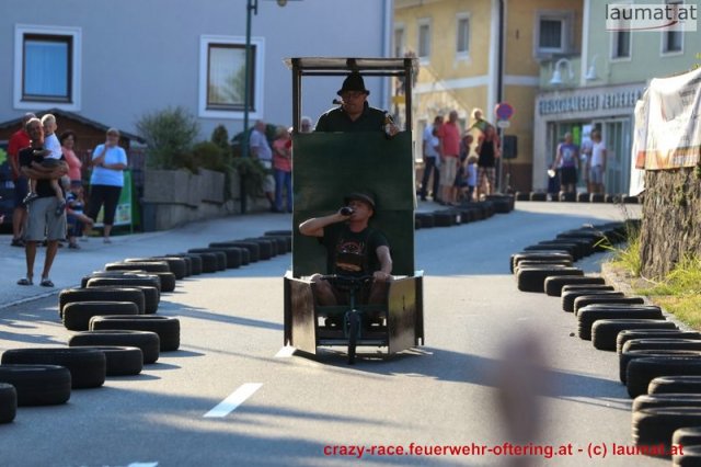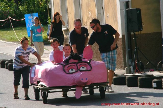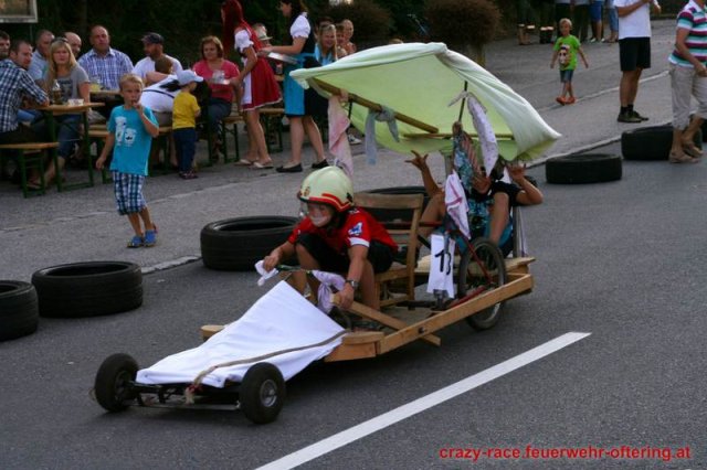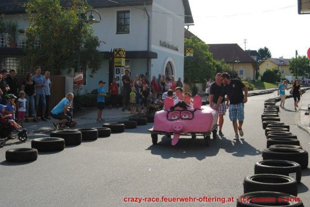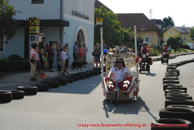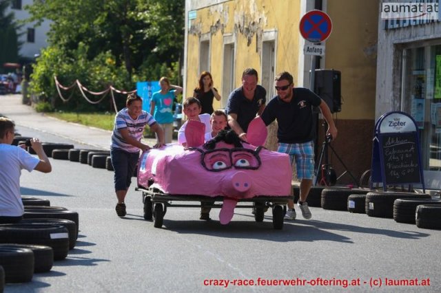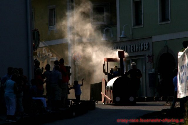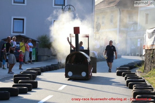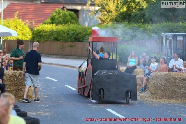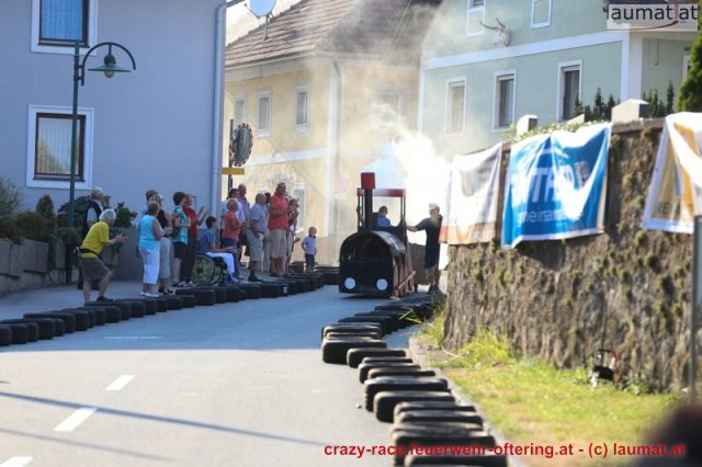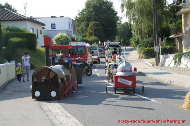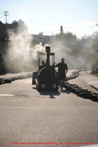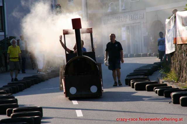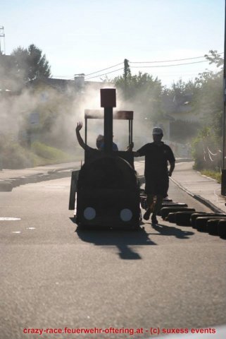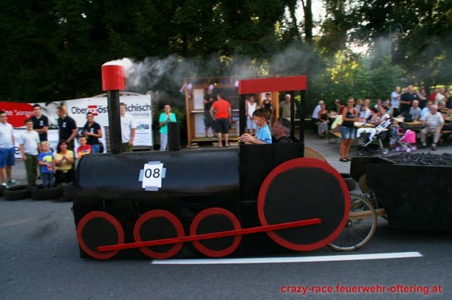 Zum 9. Mal wurde das CRAZY RACE auf de „Ofter-Ring“ von der Feuerwehr Oftering am 10. August 2013 veranstaltet. Die Kreativität der Teilnehmer kannte auch in diesem Jahr keine Grenzen – heuer warf scheinbar schon der Westbahnausbau seine Schatten voraus, eine Dampflok mit Tender dampfte durch das Ofteringer Zentrum.
