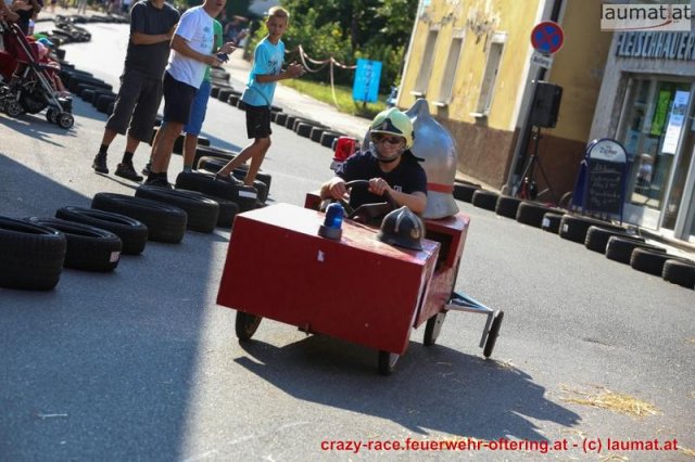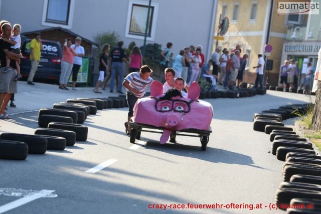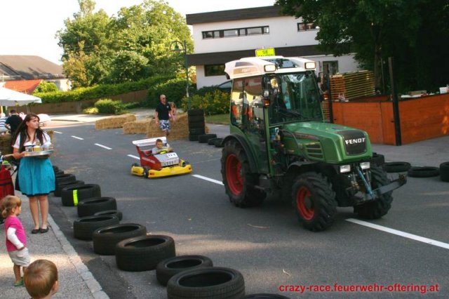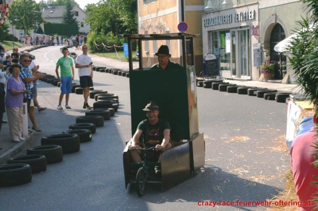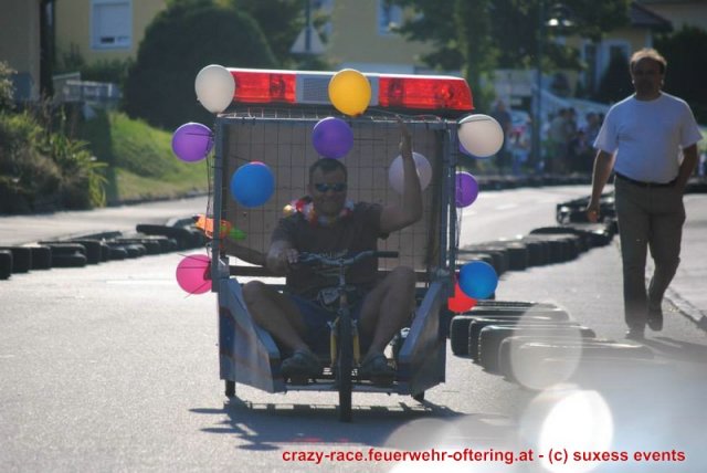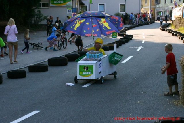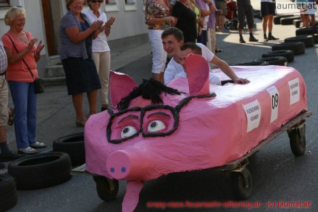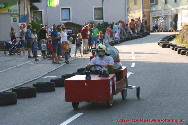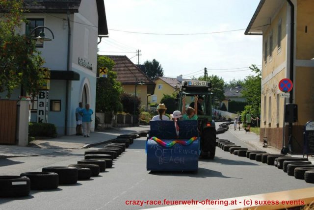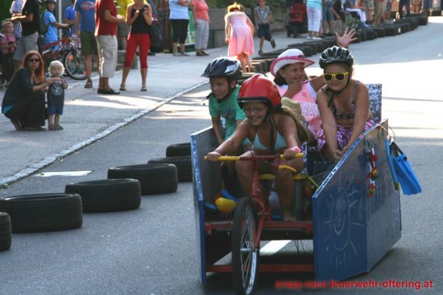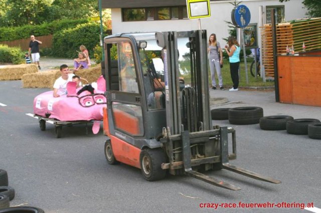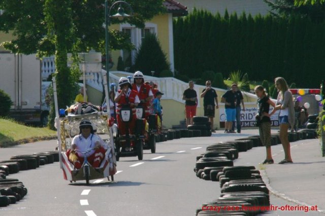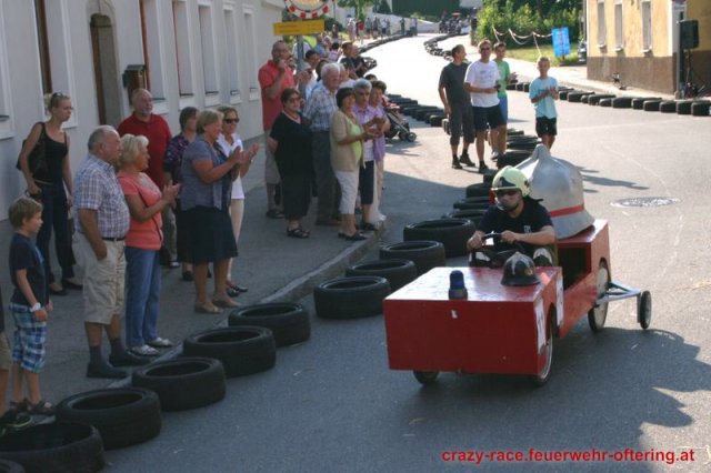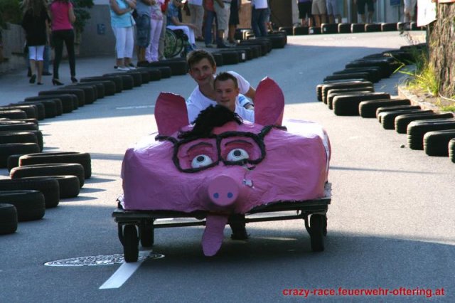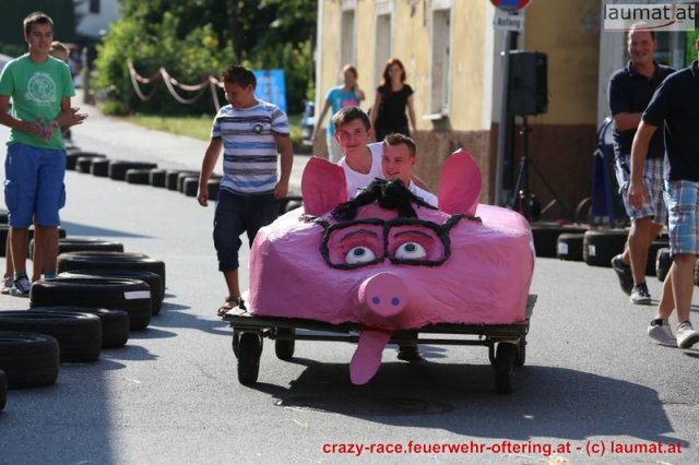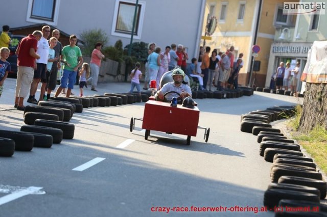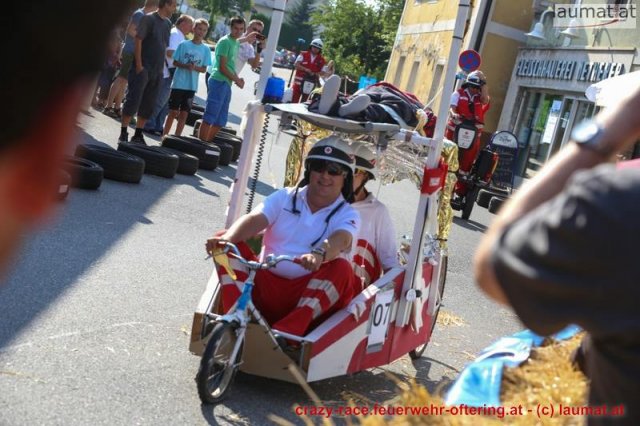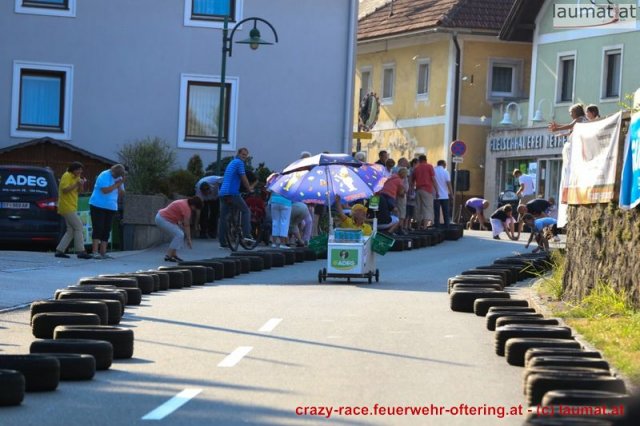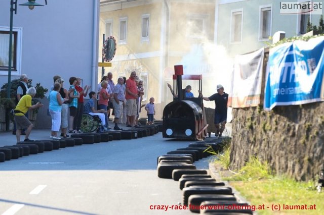 Zum 9. Mal wurde das CRAZY RACE auf de „Ofter-Ring“ von der Feuerwehr Oftering am 10. August 2013 veranstaltet. Die Kreativität der Teilnehmer kannte auch in diesem Jahr keine Grenzen – heuer warf scheinbar schon der Westbahnausbau seine Schatten voraus, eine Dampflok mit Tender dampfte durch das Ofteringer Zentrum.