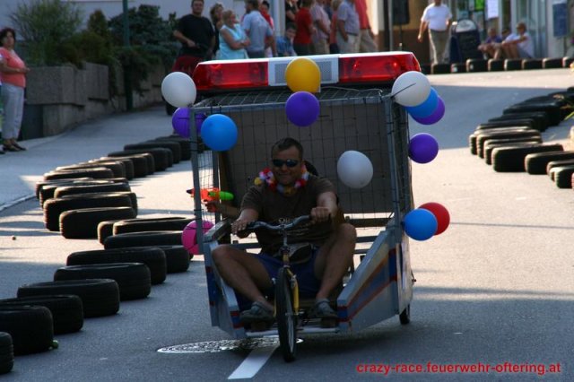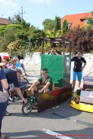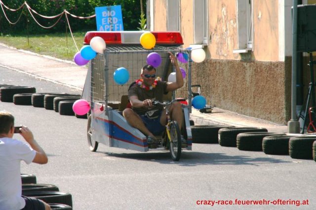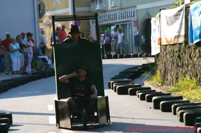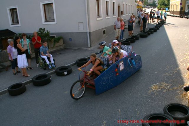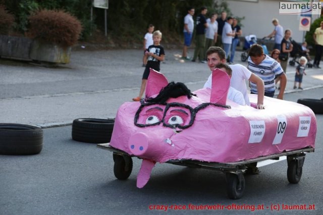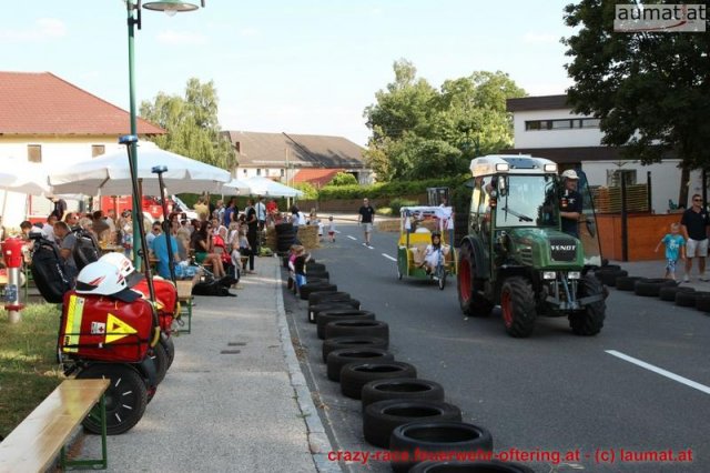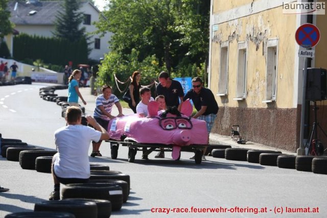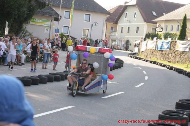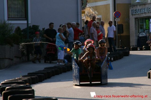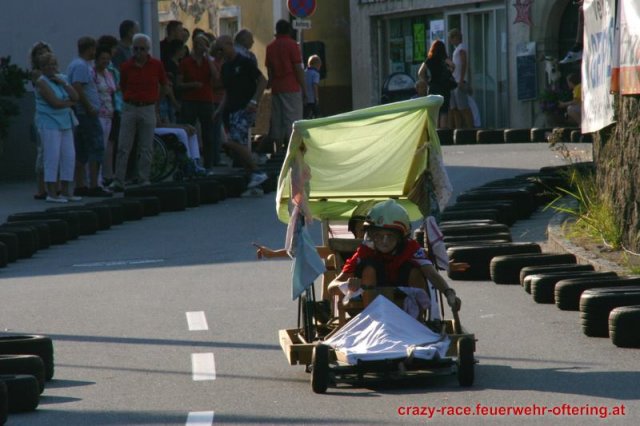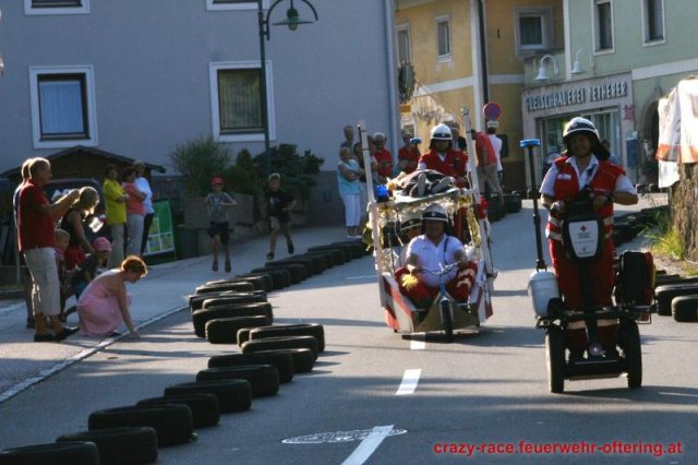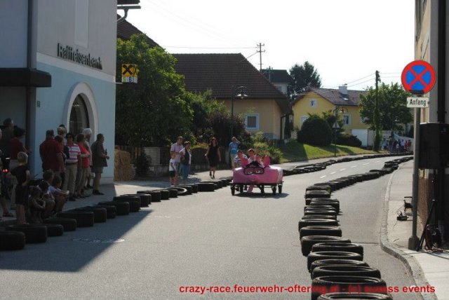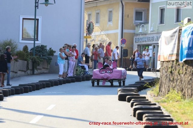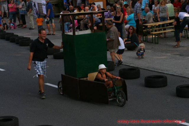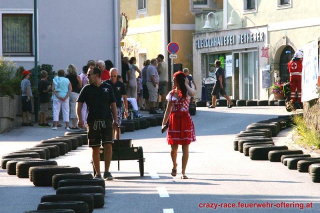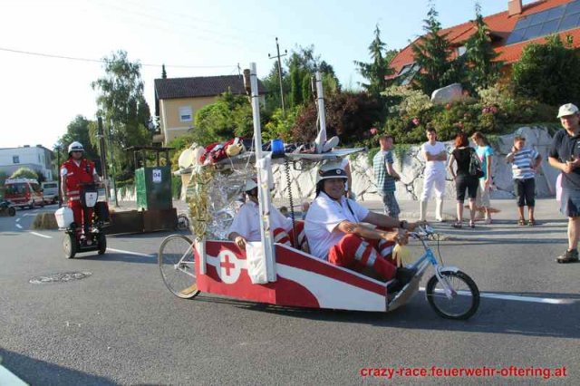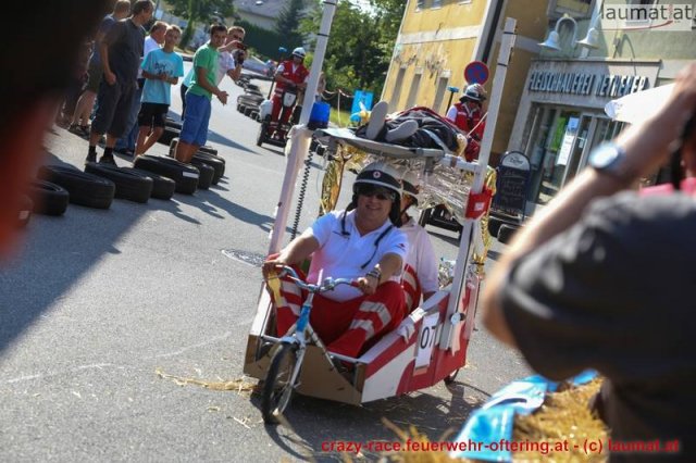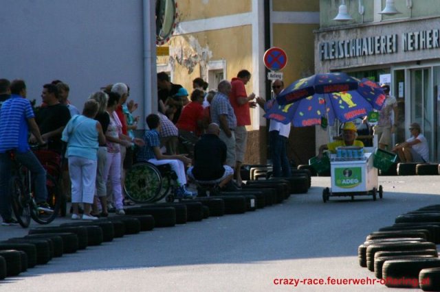 Zum 9. Mal wurde das CRAZY RACE auf de „Ofter-Ring“ von der Feuerwehr Oftering am 10. August 2013 veranstaltet. Die Kreativität der Teilnehmer kannte auch in diesem Jahr keine Grenzen – heuer warf scheinbar schon der Westbahnausbau seine Schatten voraus, eine Dampflok mit Tender dampfte durch das Ofteringer Zentrum.