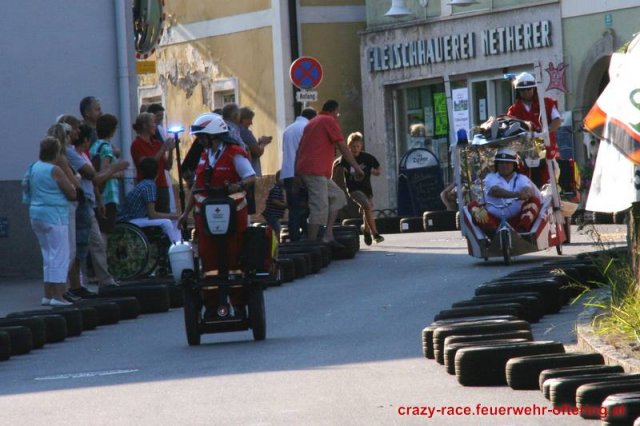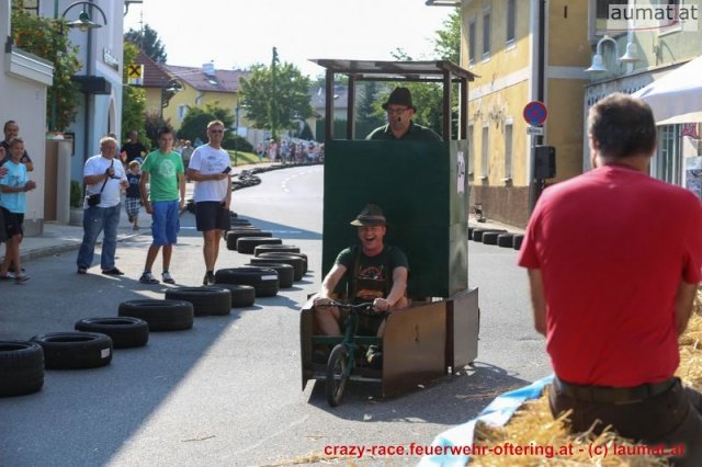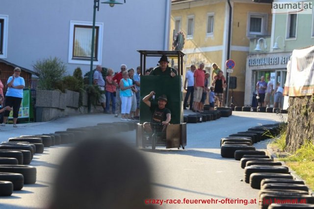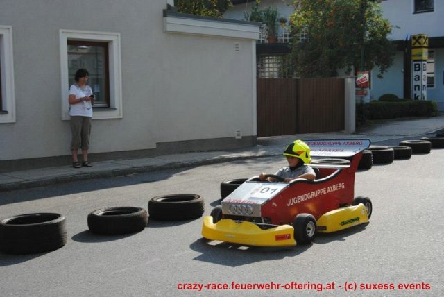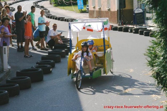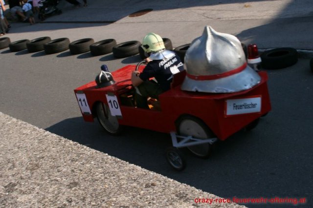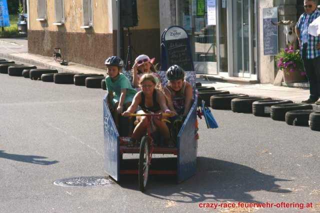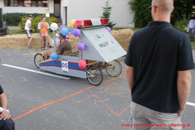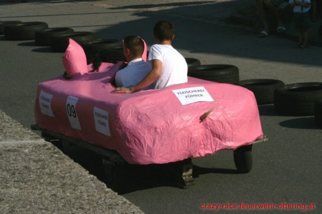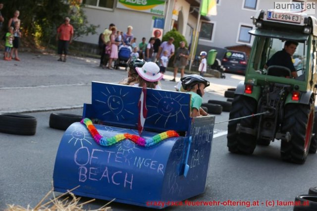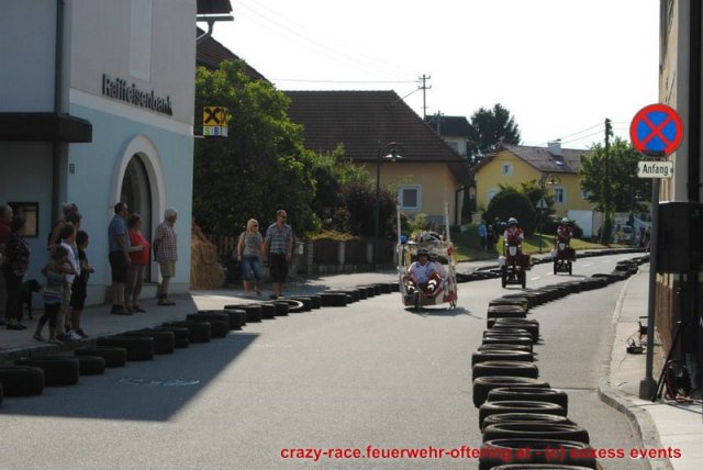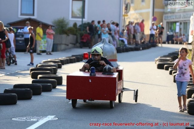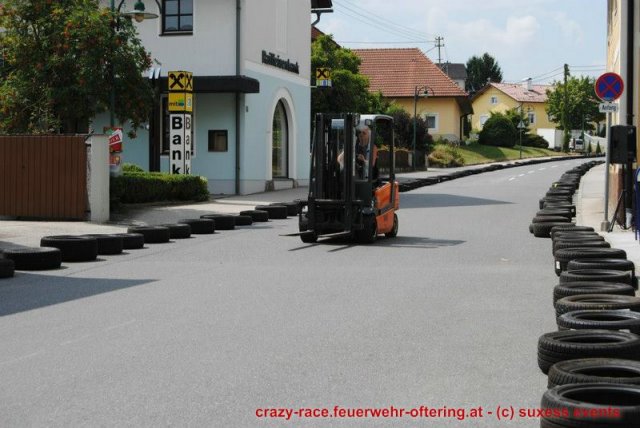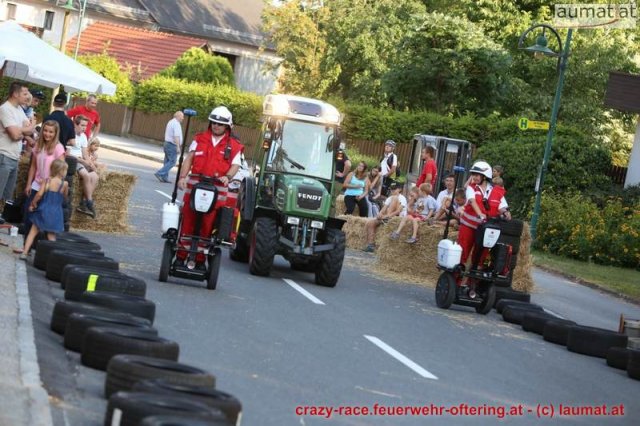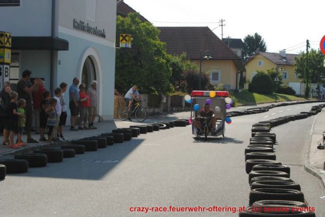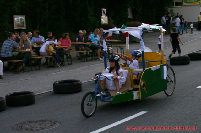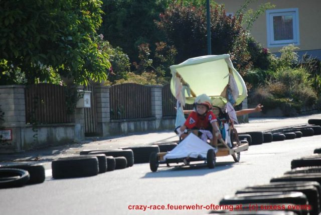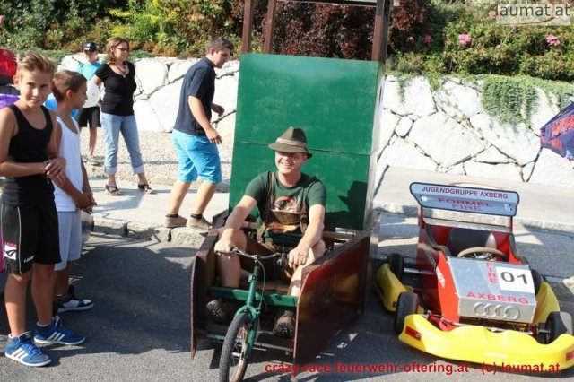 Zum 9. Mal wurde das CRAZY RACE auf de „Ofter-Ring“ von der Feuerwehr Oftering am 10. August 2013 veranstaltet. Die Kreativität der Teilnehmer kannte auch in diesem Jahr keine Grenzen – heuer warf scheinbar schon der Westbahnausbau seine Schatten voraus, eine Dampflok mit Tender dampfte durch das Ofteringer Zentrum.