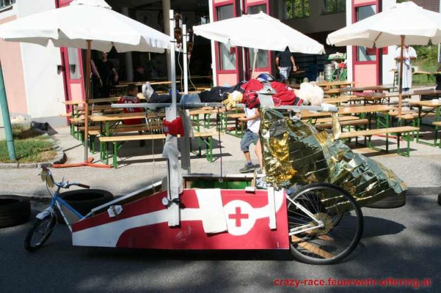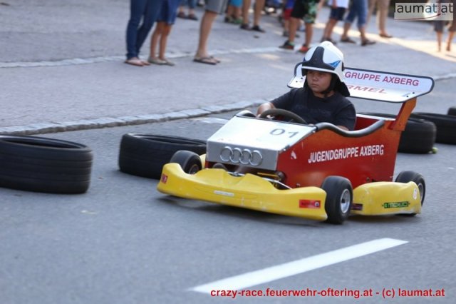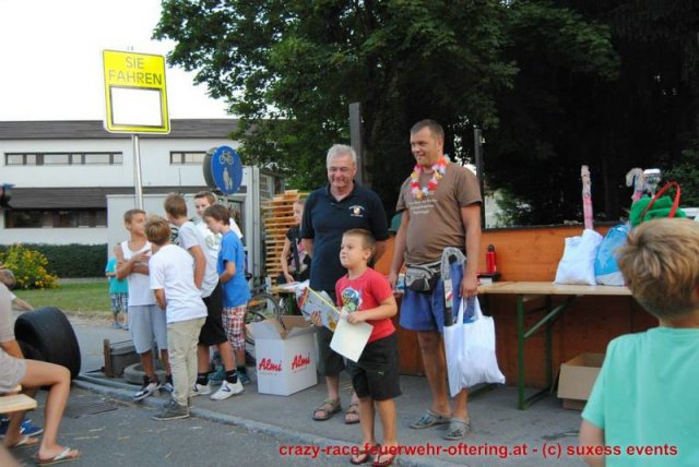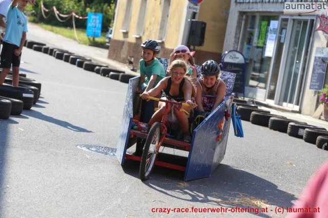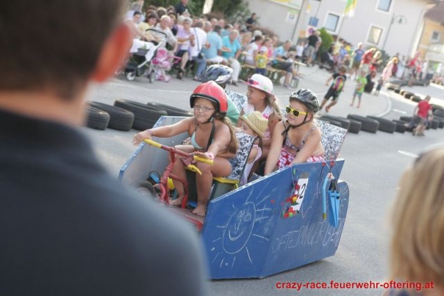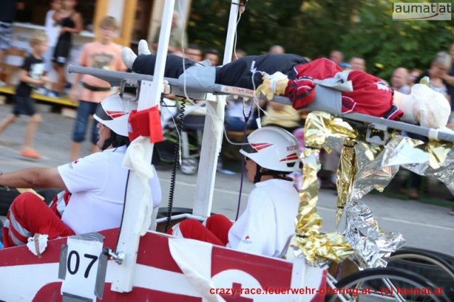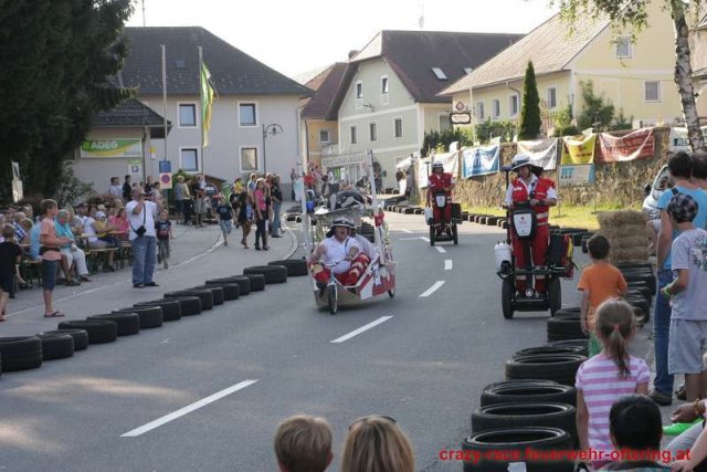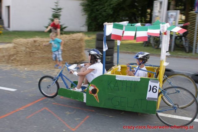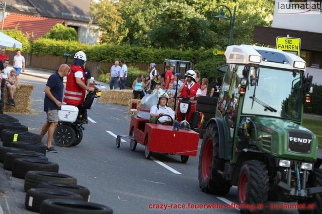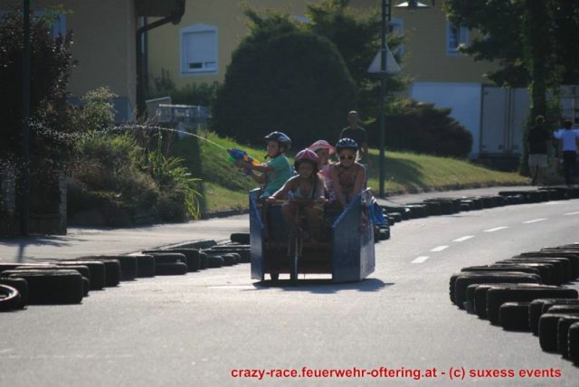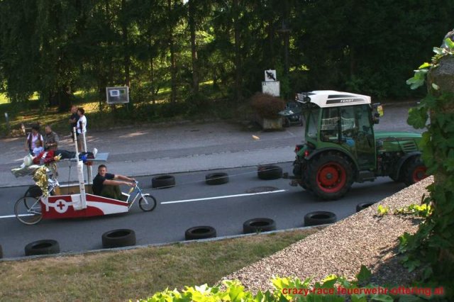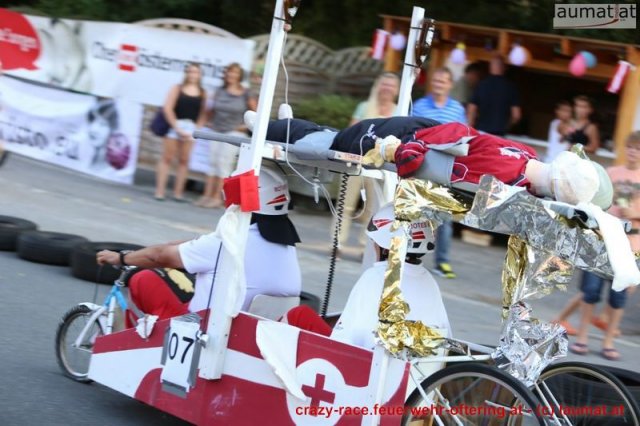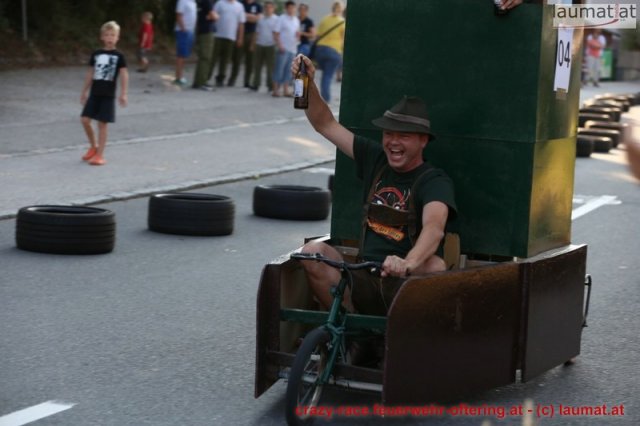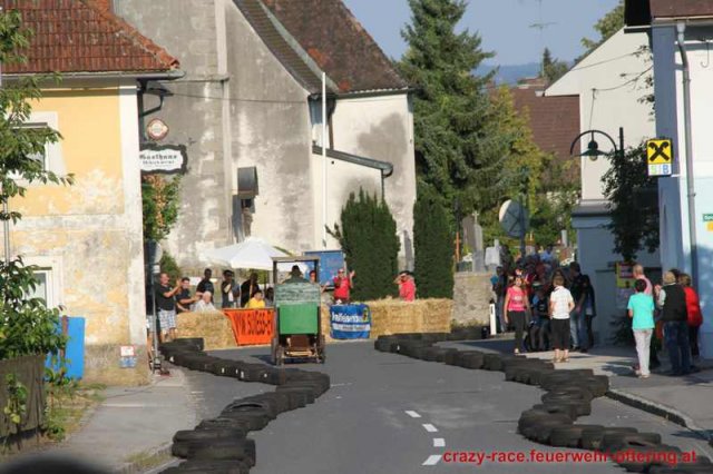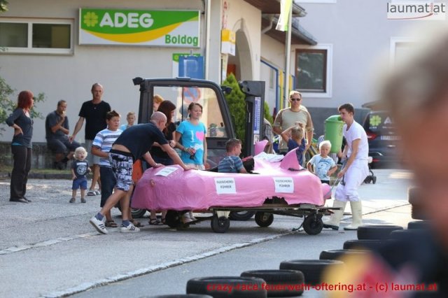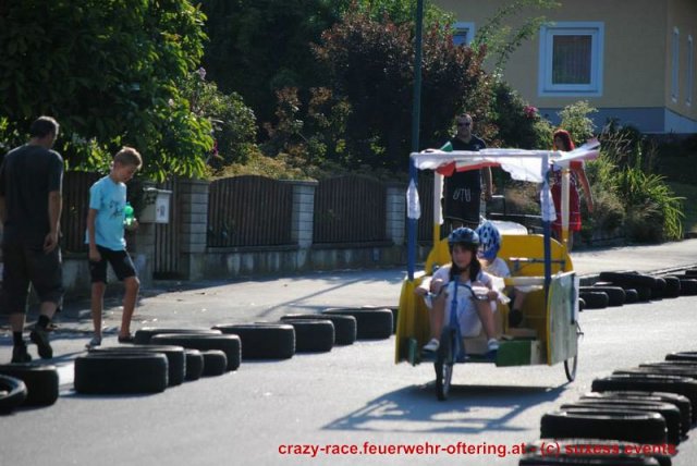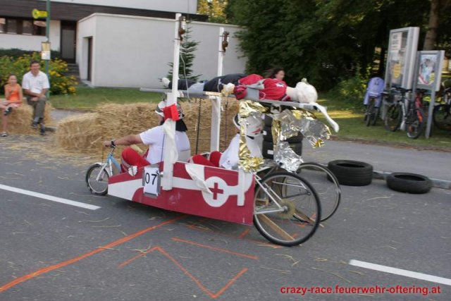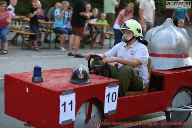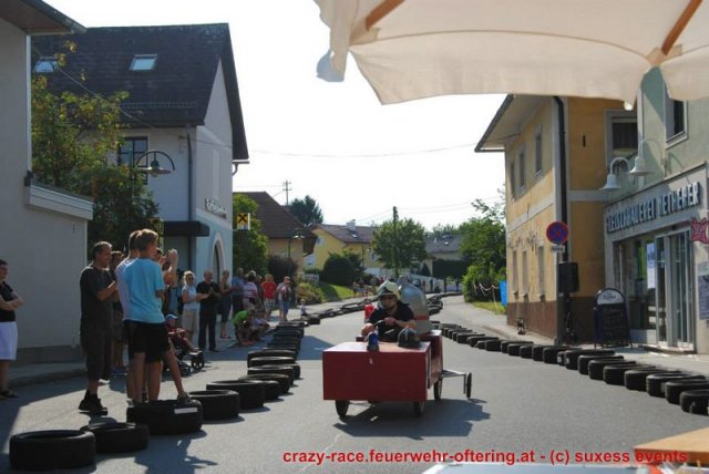 Zum 9. Mal wurde das CRAZY RACE auf de „Ofter-Ring“ von der Feuerwehr Oftering am 10. August 2013 veranstaltet. Die Kreativität der Teilnehmer kannte auch in diesem Jahr keine Grenzen – heuer warf scheinbar schon der Westbahnausbau seine Schatten voraus, eine Dampflok mit Tender dampfte durch das Ofteringer Zentrum.