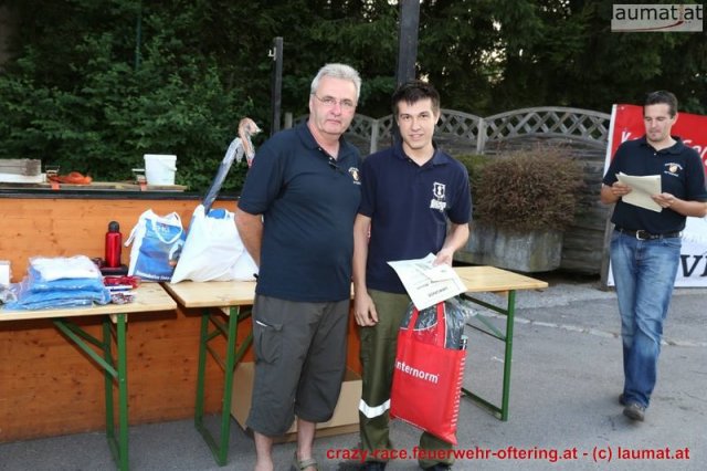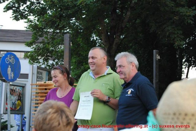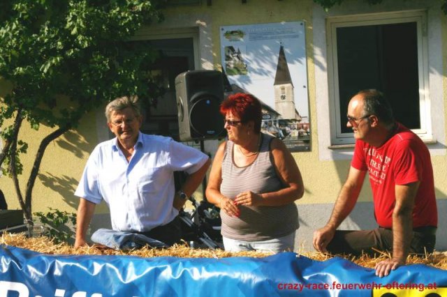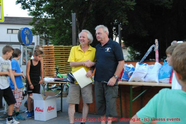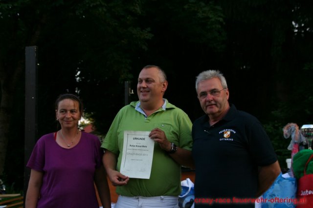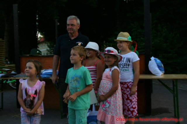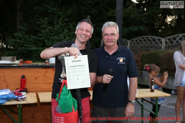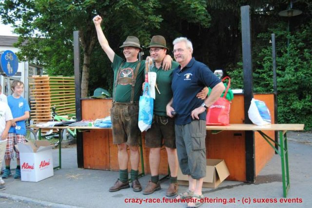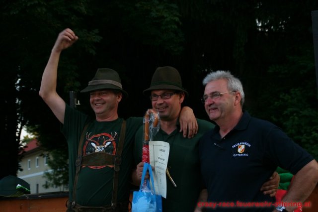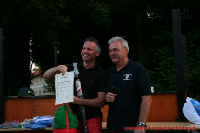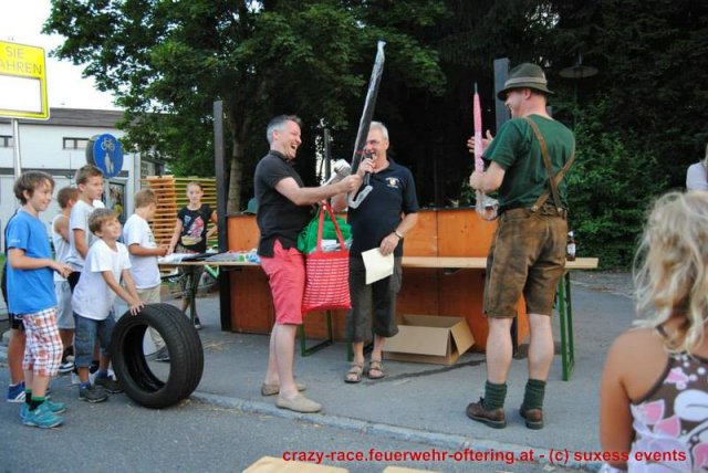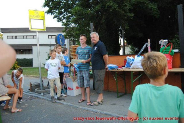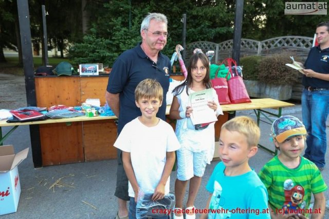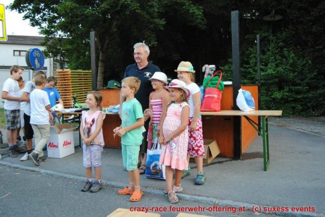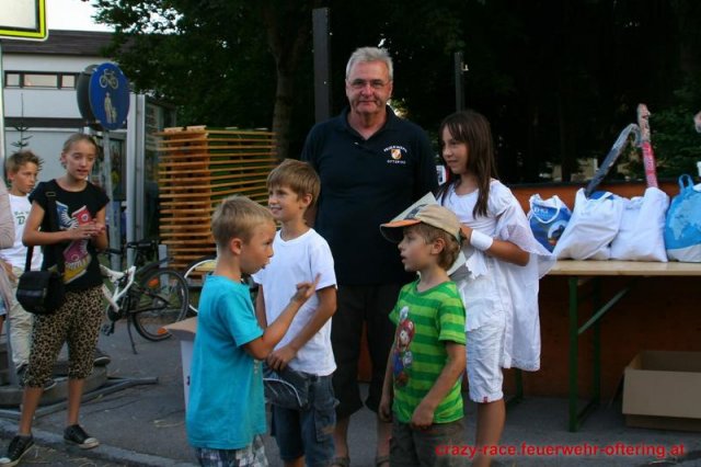 Bei der Königsdisziplin – dem CRAZY RACE – war die Jury lange unschlüssig, erst der letzte Teilnehmer stellte das Klassement nochmals auf den Kopf und setzte sich an die Spitze. Die Haltestelle Oftering gewann das 9. Seifenkistenrennen der FF Oftering mit der Maximalwertung von 30 Jurypunkten und darf sich nun über ein Wochenende mit einem Cabrio – zur Verfügung gestellt von Renault Sonnleitner - freuen. Knapp dahinter platzierte sich die Ofteringer Jägerschaft mit dem fahrenden Hochstand vor dem Kinderteam des "Ofteringer Beach". Der anschließende Dämmerschoppen bot das perfekte Ambiente für die Siegerehrung und noch weitere gemütliche Stunden bei der Feuerwehr Oftering. Wir danken herzlich allen Unterstützern und freuen uns auf das CRAZY RACE 2014 – vielleicht auch mit Ihnen als Piloten?