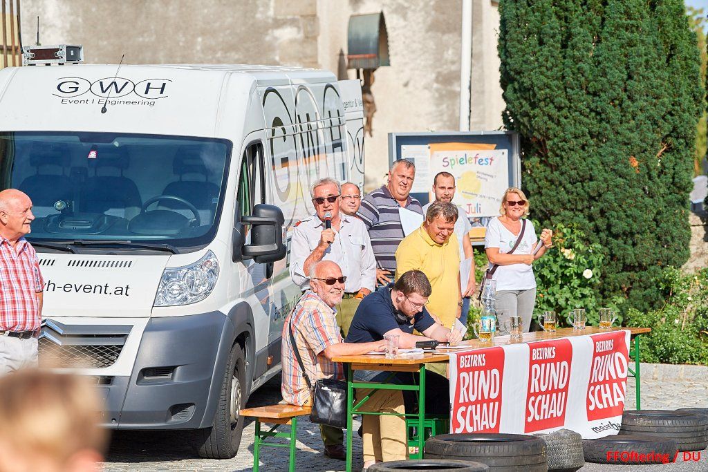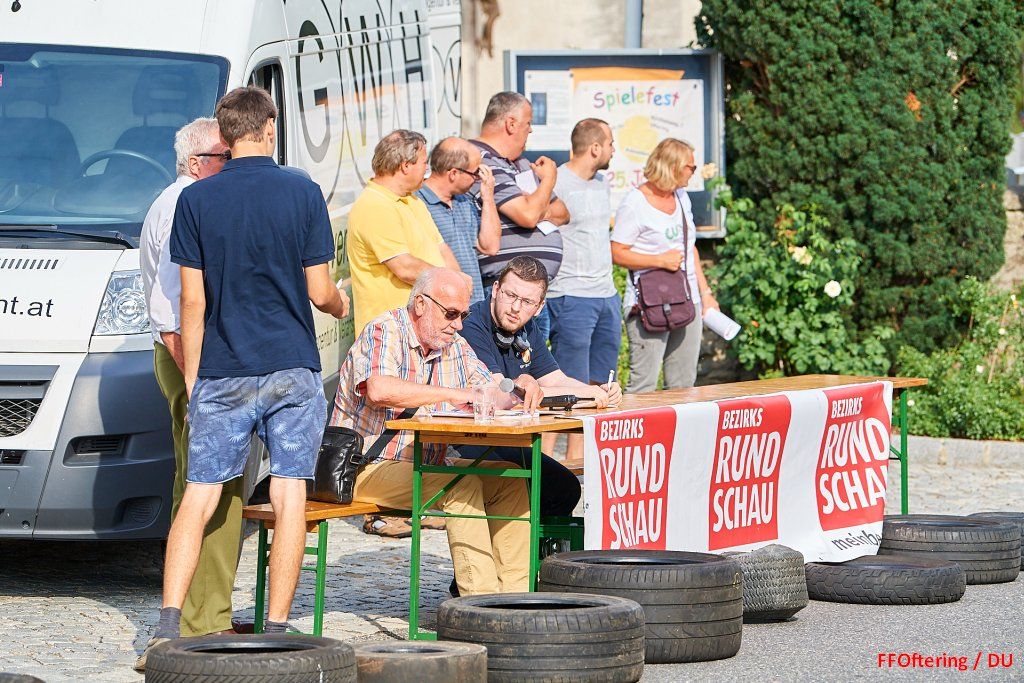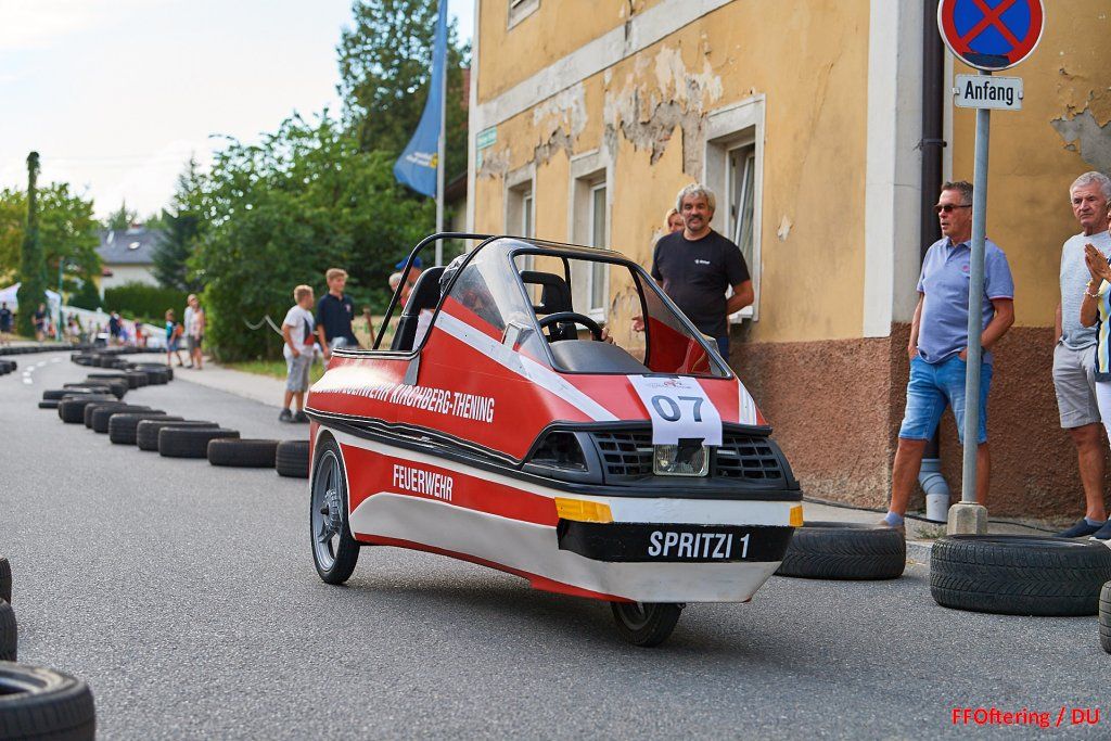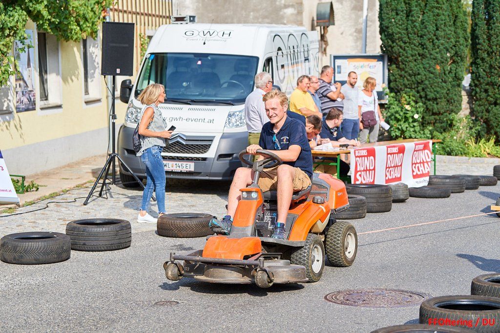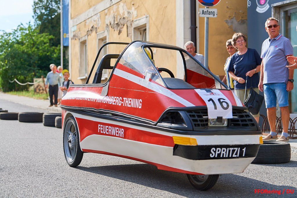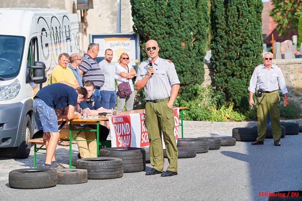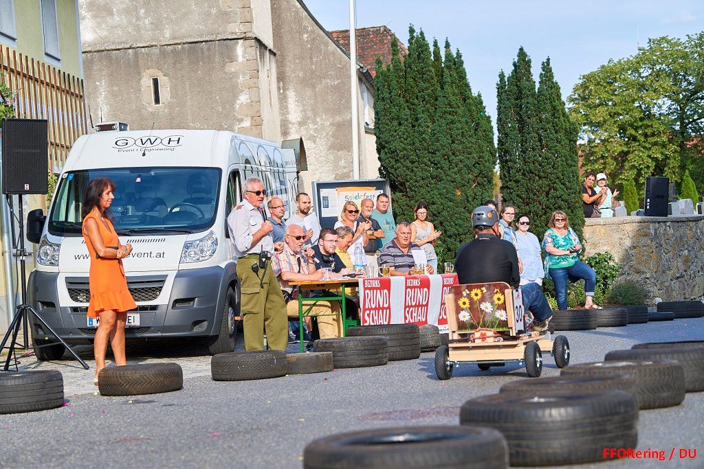 Kurz vor 17:00 Uhr war dann etwas überraschend fix - 28 Teilnehmer wollen gewinnen und werden dafür alles geben (Online-Anmeldungen inkl. Reservierungen 16!). Das Wetter, ca. 27° und Sonnenschein - perfekt. Bevor es richtig losging, wurde noch die Jury vorgestellt und die wichtigsten Informationen zum Rennen bekannt gegeben. Eine Neuerung - ein professioneller Moderator mit 2-3 Jährchen Erfahrung - Wolfgang Bankowsky - konnte dem Publikum die Situation der Fahrer und die engen, stickigen Verhältnisse im Cockpit detailgetreu vermitteln. Ehrenkommandant und Lokalmatador Reinhold gab ihm die nötigen lokalen Infos.