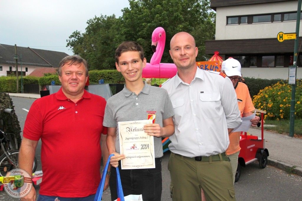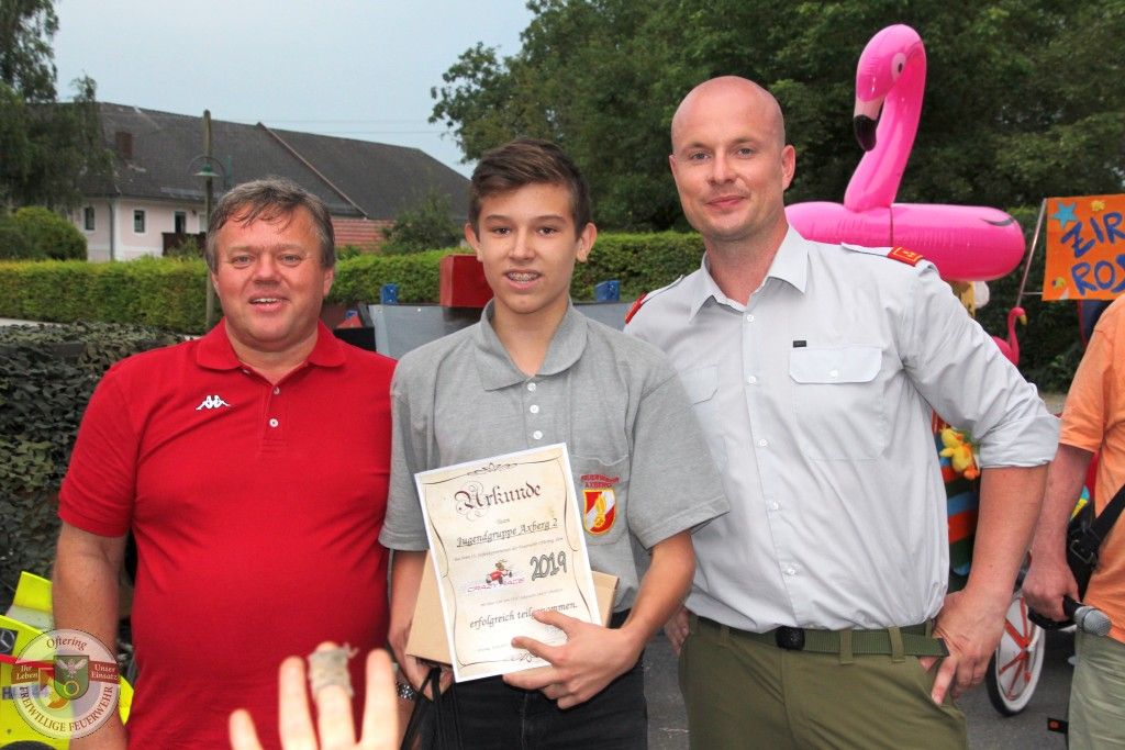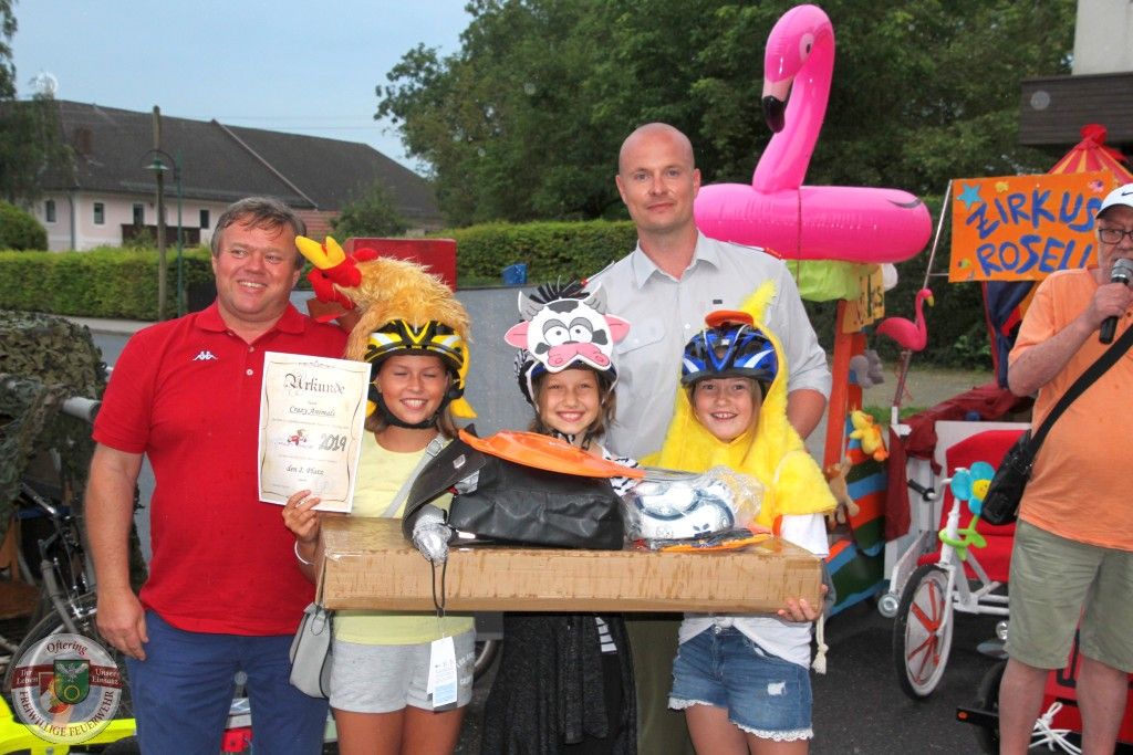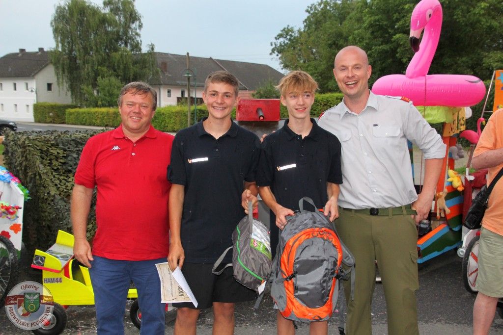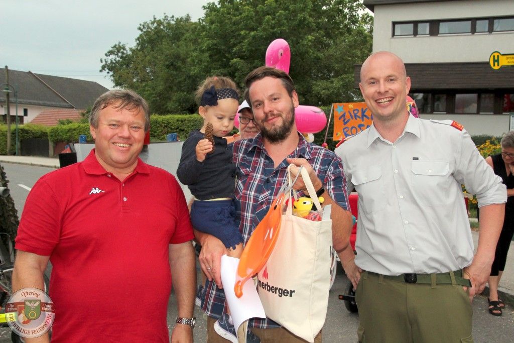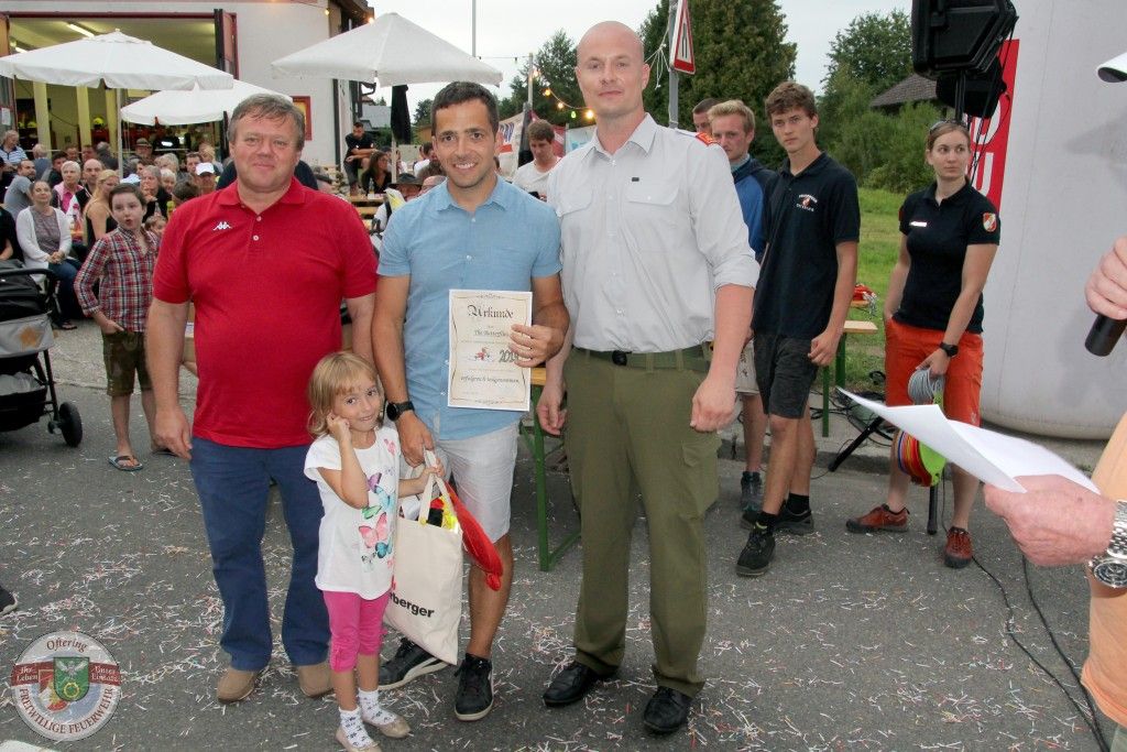 Um 19 Uhr wurde die Preisverleihung durchgeführt, bei der es am Ende zu regnen begann. Während viele Gäste nun verständlicherweise das Weite suchten, wurde der Rest mit Schirmen versorgt bzw. im Feuerwehrhaus untergebracht.